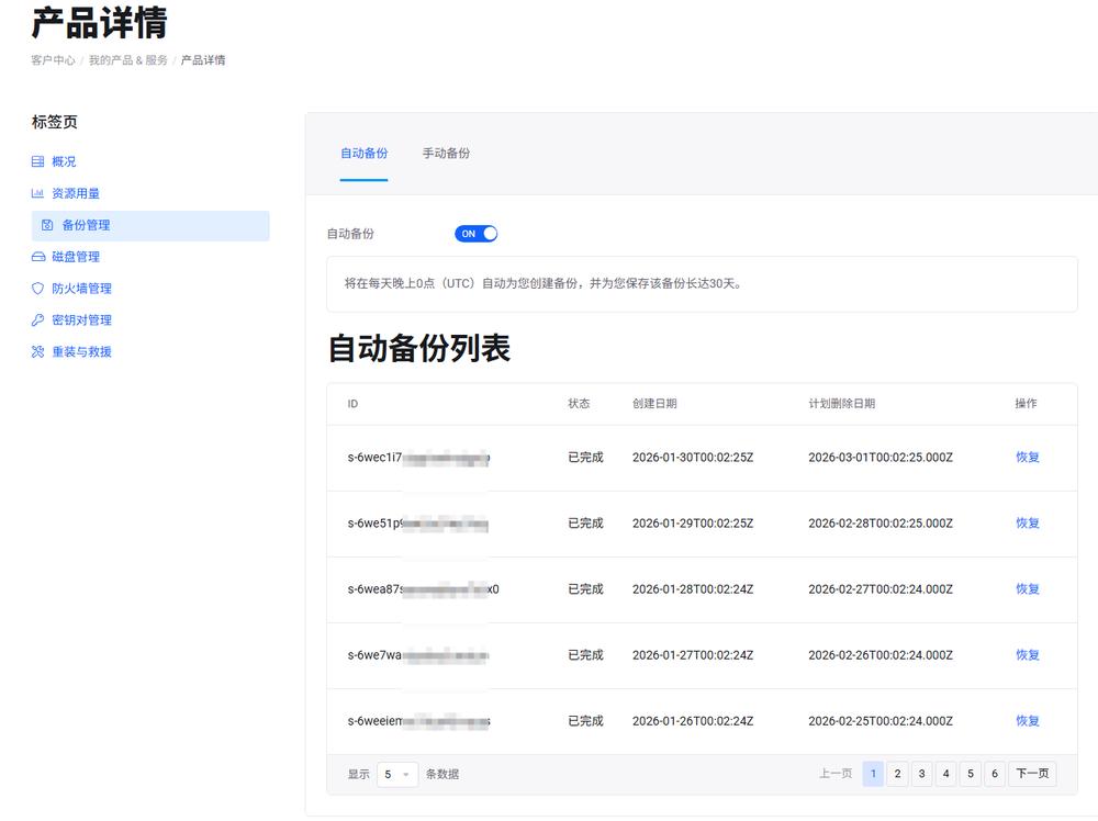 幸亏去年不管NS论坛里多少人黑爪云,我都没放生这台香港迁移日本的绝版机。单单免费的30天每天自动备份这个功能就值回每月$4的价格了!虽然我也做了云盘和本地NAS每天自动同步备份,但是这样玩还得重装系统再一个个导入哪有直接点下恢复1分钟内就能还原的好呢~