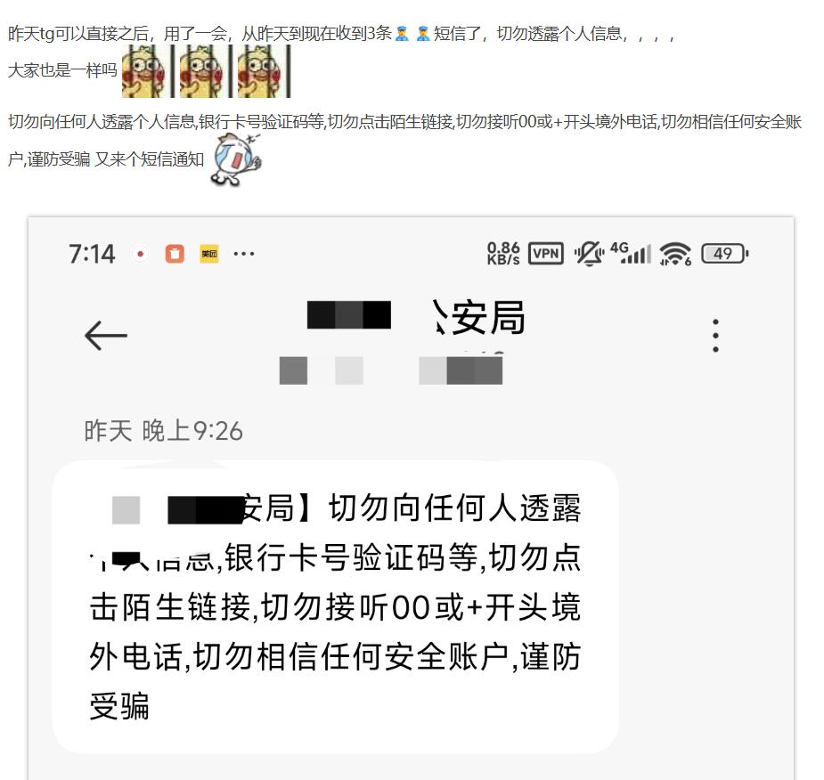2 月前 哈切嗒叭 3 次浏览 2 分钟阅读 昨天一早Telegram三网直连登录,今天后遗症来了 昨天一早6:30~7:00左右很多人发现Telegram无需出国环境,三网直连登录、引发一阵狂欢甚至很多人关了科学去登录一下。期间也有人警告别去这么干相当于实名自我检举。中国有句古话:不作不死 接着今天的主题是 复制链接。 https://310100.com/905.html 相关文章 凌晨3:01突然宽带断线... 3 周前 1 分钟阅读 一年一度的教师节隔空祝福又来了 3 周前 1 分钟阅读 外甥女要配电脑配置往高了来 4 周前 1 分钟阅读 被准三年级的小侄女嫌弃了~ 1 月前 1 分钟阅读 0 情绪好多,语言有限。说说你想说的…… 发表回复 取消回复要发表评论,您必须先登录。 上一篇 真好,又活了一天! 下一篇 退休返聘是是规避社保?